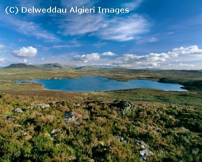 Llyn Conwy and the Arenig Mountains. Migneint Ysbyt Estate. National Trust. Snowdonia National Park. North Wales.