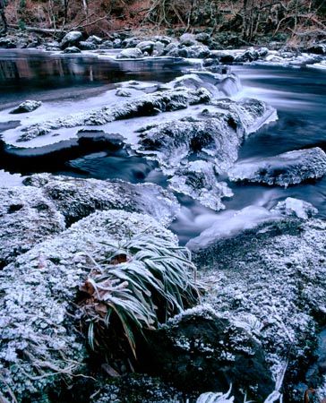 Winter 2009 snow & ice forms on Afon Llugwy Capel Curig, rivers of north wales snowdonia national park