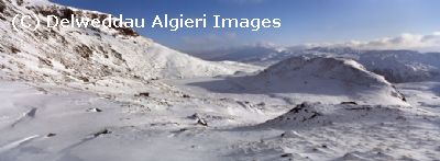 Snow scenes, winter landscapes of north wales, mountains scenery, snowdonia national park, paths to snowdon. x-pan panoramic.