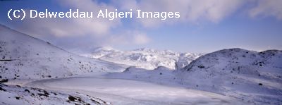 Snow scenes, winter landscapes of north wales, mountains scenery, snowdonia national park, paths to snowdon. x-pan panoramic.