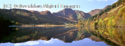 Gwydir forest Conwy Valley Snowdonia National Park Autumn Panoramic reflections lakes of North Wales