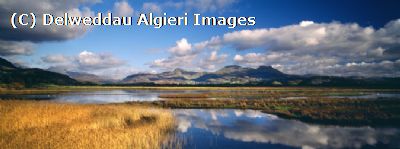 Glaslyn from cob Porthmadog view to Snowdonia
