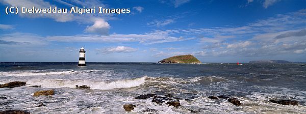 Panoramic view of Penmon point & lighthouse. Available in panoramic sizes only.
